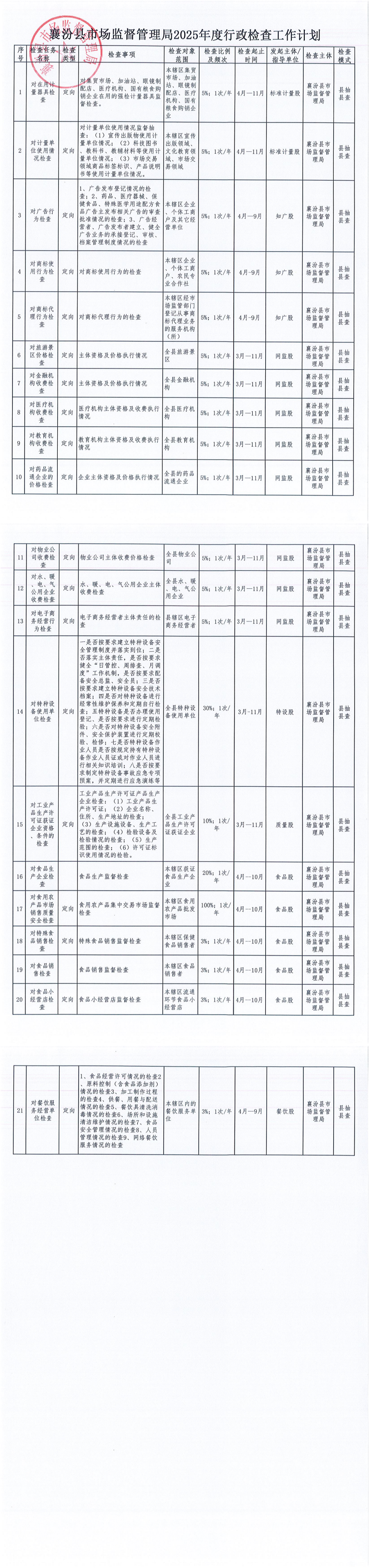 襄汾县市场监督管理局2025年度行政检查工作计划